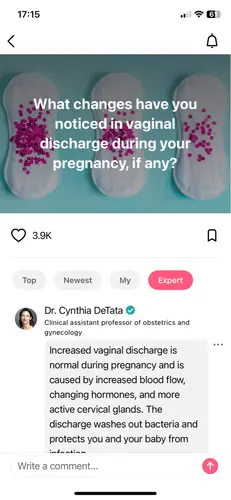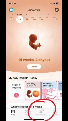 Het is een app genaamd “Flo” ik gebruik deze al jaren voor mijn cyclus te tracken, je kan hier ook voor betalen (doe ik niet) ik heb deze dan nu ook op zwangerschapmodus staan, maar veel heb ik er niet aan omdat alles wat je zou willen lezen is betalend van de “experten” maar vanonder staan dan de “secret chats”. Zo heb je verschillende onderwerpen die je kan volgen. Zwangerschap, proberen zwanger te geraken, seksualiteit,… en dan worden er onderwerpen in besproken.