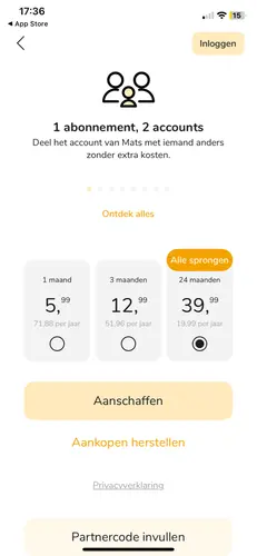 Ik krijg de opties om per maand te betalen. Hoeveel betalen jullie eenmalig?