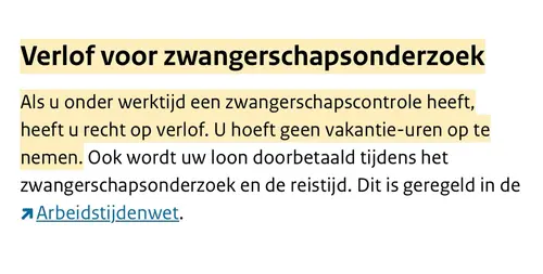 Weet iemand hoe het zit als je een echo gepland heb op een werk dag. Tot nu toe probeer ik dit op een dag te plannen waarin ik vrij ben. Helaas is dit bijna nooit mogelijk ivm de drukte bij de verloskundige of dat ze dan geen echo op de juiste locatie hebben. Dan ben ik genoodzaakt om dit op een werkdag te plannen. Ik zorg er wel voor dat het zo laat mogelijk is op de dag zodat het me zo min mogelijk uren kost. Nu hoorde ik via een verloskundige dat je recht heb op verlof hiervoor van werk. Ik heb op internet gekeken en zien dit inderdaad staan. Nu heb ik dit gemeld aan me baas en die dacht dat dit niet klopte omdat dit alleen voor full timers geldt. Weten jullie hoe dit zit ?