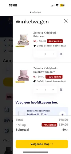 Ik vind het zo jammer dat bijna alles polyester is. De enige katoenen optie die ze hebben is een winter dekbed en dat is echt veel te warm voor in ons nieuwbouwhuis. Ik heb voor onszelf een katoenen versie van een Brits merk, maar ik kan nergens kinder of 1 persoons versies vinden in katoen.