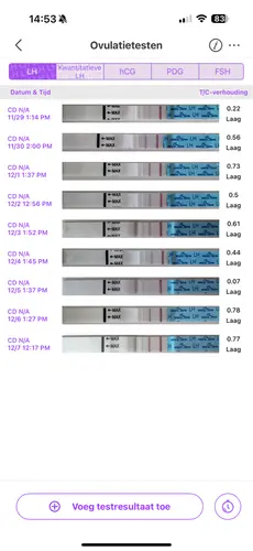 Klopt! Ik had ook soms een gek dipje voor mn ovulatie eraan kwam dus ik denk wel dat morgen/overmorgen je ovulatie eraan komt want je ziet hem wel oplopen! Bedenk met zo een ovulatietest dat het er ook vanaf hangt hoe geconcentreerd je urine is... Heb je een dag weinig gedronken en meer gezweet door bv te sporten, zal hij donkerder uitvallen als een dag dat je heerlijk theetje na theetje op de bank heb zitten drinken :) bij mij waren deze test wel echt donkerder of even donker op het moment dat ik mn ovulatie had. Veel plezier komende dagen! En anders een keertje extra een gezellige avond kan nooit kwaad toch 😉