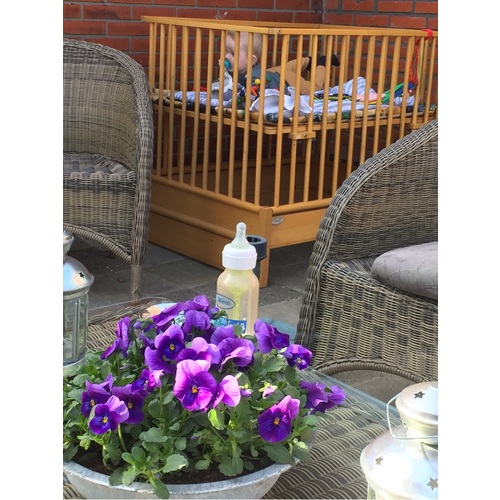 Wij hebben een foam mat/picknick kleed maar bleef onze oudste ook niet op liggen. Zit nu te denken om een zwembadje neer te zetten met een iets hogere rand en daar een kleed in met speelgoed ofzo🙈 of een helft van een schelpenzandbak bedekken met zacht materiaal. Je hebt ook speciale buitenboxen en wij gebruiken hiervoor ook het campingbedje