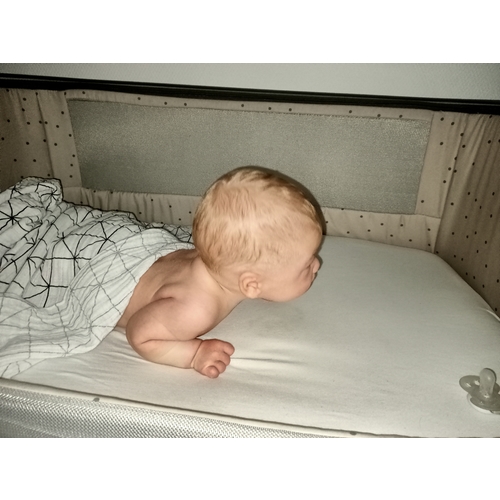 Haha alleen maar fijn het meedenken! Bij m'n ouders heeft hij geen Aero maar dan lijkt hij het toch niet gelijk door te hebben dat hij op z'n neus ligt.. Voor nu blijf ik er dus sowieso bij en 's nachts gewoon op z'n rug (dan maar evt. strijd)..