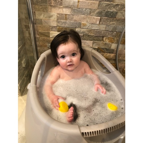 Ik heb een paar weken geleden een douche badje van OK-Baby aangeschaft. Echt fantastisch ding en door de vorm zit m’n kindje er stevig in zonder dat ze kan wegglijden.