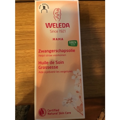 Ik heb op aanraden van een vriendin Weleda gekocht. Ben nu twee weken aan het smeren. 1 keer in de ochtend en voordat ik naar bed ga. Mijn jeuk is weg (hier had ik veel last van) en de olie trekt snel in. Tot op heden nog geen last van striae, hopelijk blijft dat zo. Ik vind het een prettig product en blijft lekker smeren tijdens de zwangerschap.