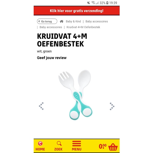 Ik heb een oefensetje van de kruidvat. Is een klein lepeltje en vorkje met wat extra grip op het handvat. Het wordt nog steeds vaak een troep, maar die lepel gaat in ieder geval niet zijn keel in 🤣