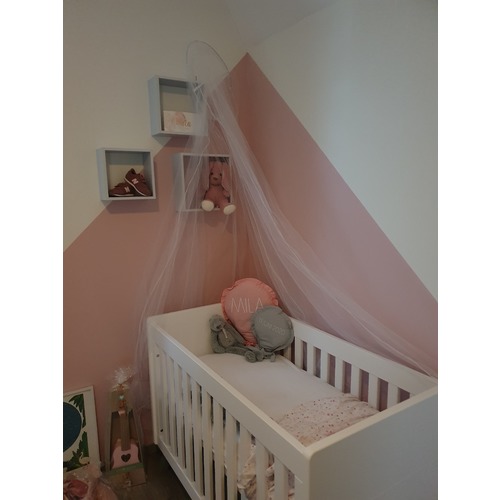 Hier ook heel veel muggen. We wonen in het buitengebied met veel (stilstaand) water in de buurt. Onze dame heeft een klamboe van de HEMA om haar bedje. Die is zeker groot genoeg!