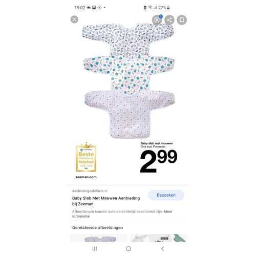 Ja hier ook het geval.. meestal kleed ik hem om maar soms doe ik hem zo een slapschort om. Besteld bij aliexpres..