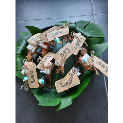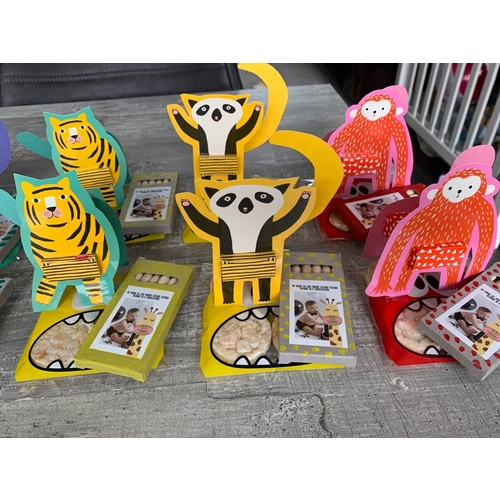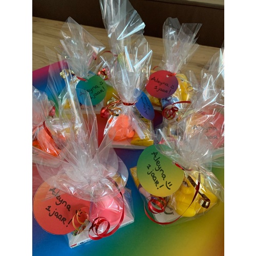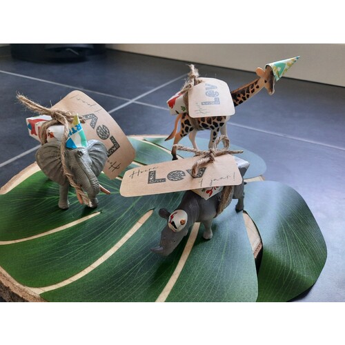 Ze krijgen nog feesthoedjes op. In het pakje op de rug zitten rozijntjes