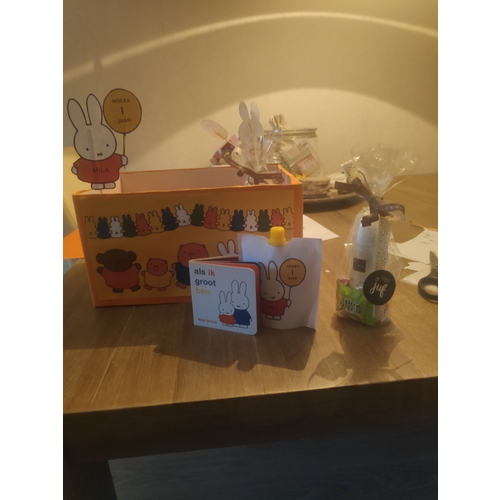 Ik had potjes klei gekocht bij Action. Daar had ik zelf een kaartje aan gemaakt en dat was de traktatie. Hij gaat naar de Gastouder en daar zijn ook grotere kindjes, dus dit viel wel in de smaak! 🤩