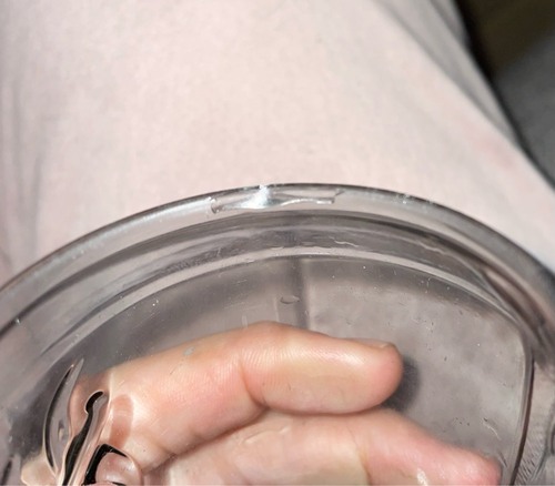 Hey, ik denk niet dat hij het eraf heeft gebeten. Ik den dat het er al in zat maar dat het je nu toevallig opviel nadat hij het ging “bijten”.. lijkt me sterk dat je glas kan breken met je tanden🥹 en als je het niet vertrouwt zou ik voor de zekerheid hap bellen, zij kunnen je beter adviseren 🥰