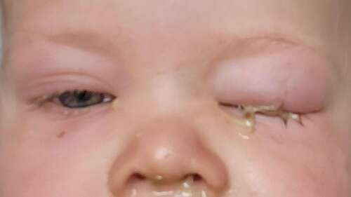 Schoonmaken met verse kamille thee op een watje! Wij hebben dit gehad vlak na de geboorte. Gekookt water, borstvoeding etc. geprobeerd niets hielp, alleen de kamille thee!