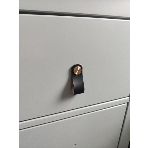 Wij hebben er goedkoop een van marktplaats gehaald. Deze geschuurd en muisgrijs geverfd. Daarnaast de leren handgreepjes in zwart met messing stud van Ali besteld.