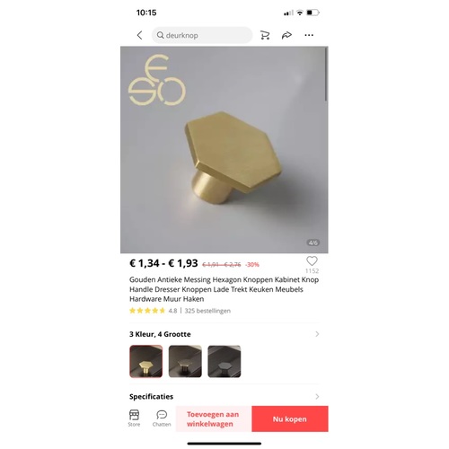 Ik heb op deze webshop houten knoppen besteld, in allemaal verschillende maten en vormen. 2 dagen later in huis! Aanrader.