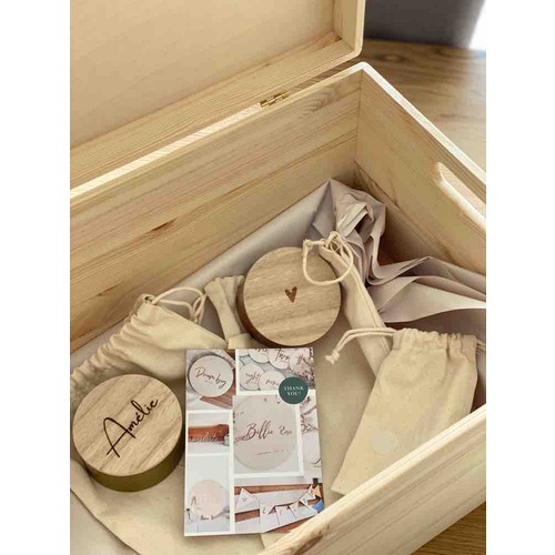 Super mooi! Zit ook nog zakjes in om eerste schoentjes enz in te steken en nog gepersonaliseerde potjes voor later de melktandjes en haarplukjes ofzo in te bewaren!