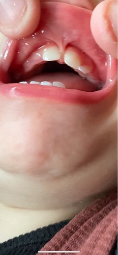 De huisarts beweerde dat het geen kwaad kon en vanzelf wel ‘meerekt’. Ik heb er niet echt een goed gevoel bij.. Ik heb het consultatiebureau bericht met een foto en die nemen zsm contact op. Ook moet ik morgen zelf naar de tandarts, daar ga ik het ook even aan vragen!