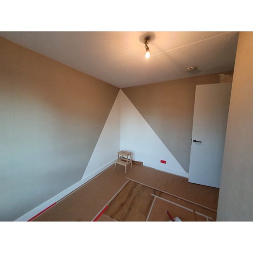 Geen verf wel behang 🤗heb je misschien ook een beetje ideetje dit is taupe behang