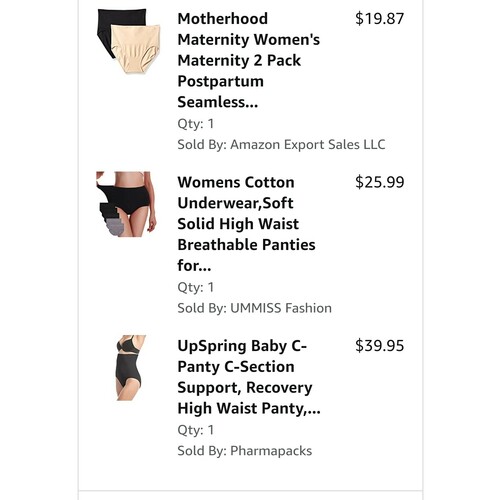 Ik denk dat ik normale simpele zwarte ga bestellen, en als ik net ben bevallen doe ik het wel met netbroekjes en de oude onderbroeken van mn vriend 🙈
