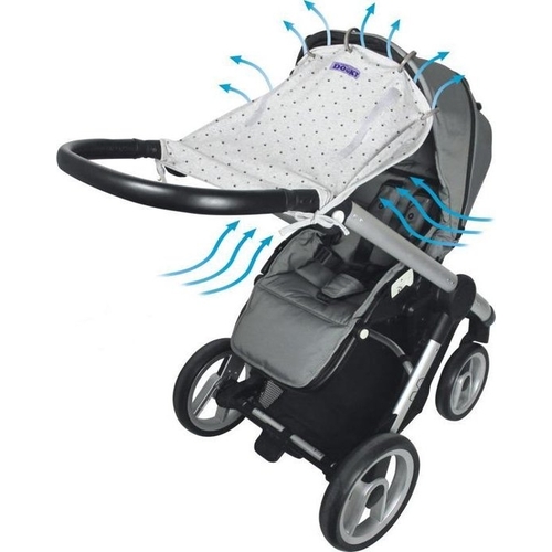 Zag deze voorbij komen op fb.. wij hebben van dooky een soort schaduwdoek aangeschaft die je aan de handvaten en aan de bovenkant kinderwagen vast kunt maken zodat het wel blijft ademen in de wagen