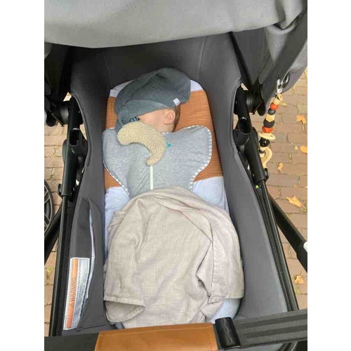 Wij konden onze grote baby met 2 maanden al niet meer in de piep krijgen, hij slaapt heerlijk in de mini met zn armpjes omhoog. Ik vind het juist wel handig omdat hij zn speen niet zo makkelijk verliest 😜 Qua ademhaling gaat het prima hoor!