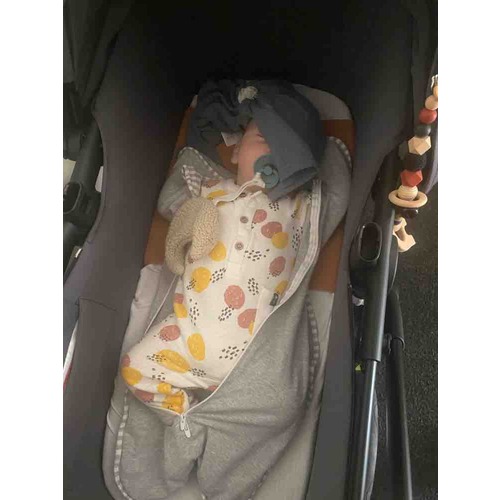 Je hebt deze ook met afritsbare mouwtjes, handig voor evt afbouwen maar ook voor slapend overzetten in bijv maxicosi, dan kan je de armpjes eruit halen.. Ik heb vanaf het begin maat M gehad en maat S overgeslagen. Op de foto hier is maat M, denk dat hij zo’n 6,5 kg is nu..