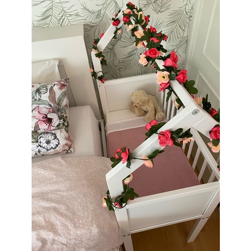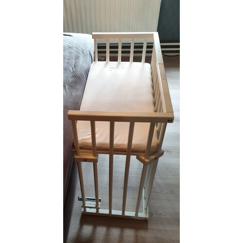Wij hebben de Leuk by TWF in Jeans blue. Ons bed is standaard erg hoog 75 cm. Dus mijn vriend gaat zelf een bak maken met hoge opstaande rand waar we hem inzetten zodat die toch hoger is. Tijdens de kraamweek zetten we die wss niet verhoogd neer maar gewoon 'los' als wiegje zodat de kraamzorg niet boos op ons wordt🤣