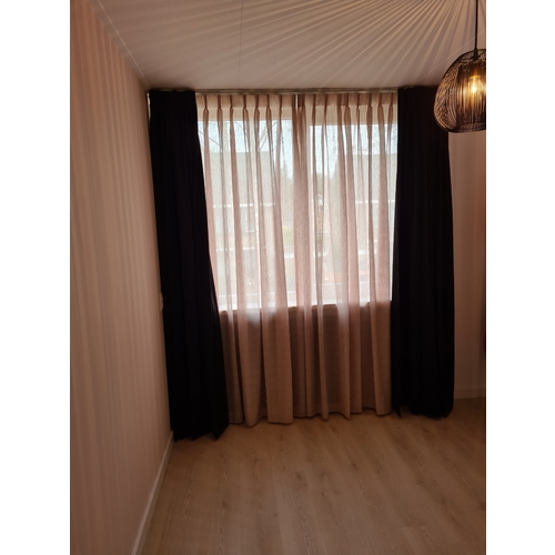 Zo hebben wij de gordijnen. Heb van buiten wel rolluiken waardoor niemand in de avond er doorheen kan kijken