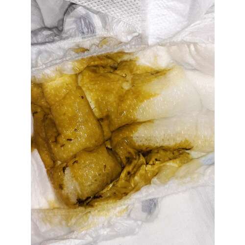 Dit was de eerste x dat ik het zag, het lijkt met de keer erger te worden. Vanavond zat het dus echt helemaal vol hiermee… zal de volgende poepluier nog een foto proberen te maken🤣