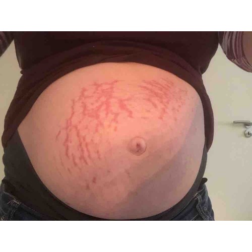 Dit was mijn buik vlak na de bevalling van mijn 2e. M’n buik was mega, stond onwijs onder spanning aan t eind. Na de bevalling flink gesmeerd omdat t onwijs jeukte.