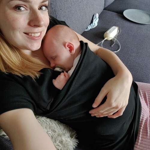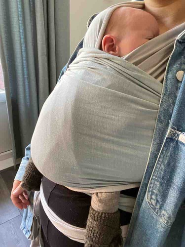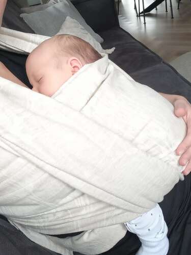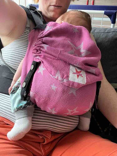 Hier ook draagdoek maar vind het zelf vrij warm. Overigens gaat knopen heel ...