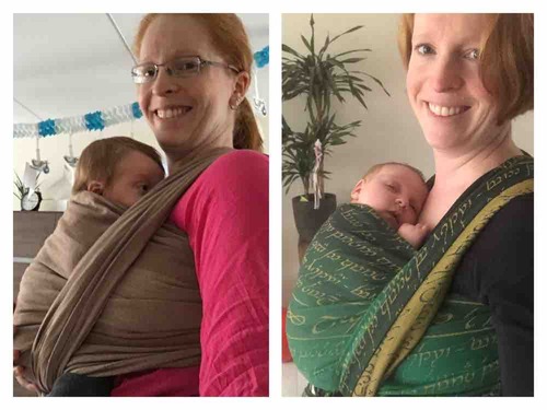 Maar bijgevoegde foto links is eerste keer knopen na consult en 2e foto is bij m’n dochter 3,5 jaar later. Je ziet heel goed hoe een stuk strakker ik geknoopt heb al(minder plooien in de doek).