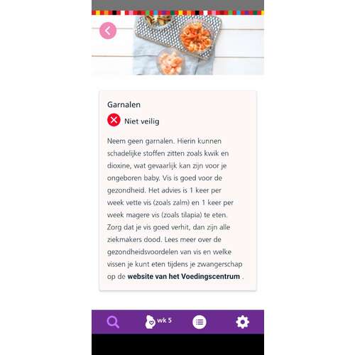 Volgens mijn verloskundige is de hele ZwangerHap app, en zijn de huidige adviezen wel héél erg overtrokken. Zolang ik geen bakje garnalen per dag eet mag ik ze lekker eten van haar!