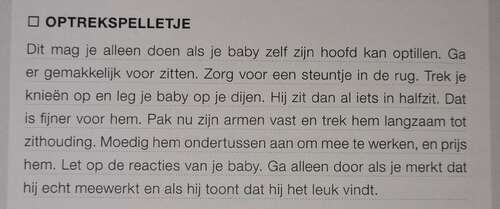 Bij controle consultatiebureau vond de arts het nog steeds niet zo spannend, omdat hij verder goede spierspanning laat zien en z’n hoofd keurig omhoog houdt. Soms moeten ze het ook even ontdekken zei ze. Hij kon het wel bij 15 weken :) niet veel specifiek dat optrekken geoefend maar gewoon vaak tummy time