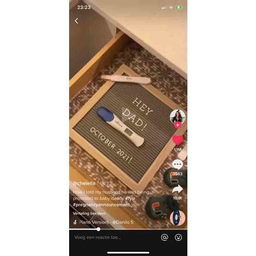 Wij hebben onze eerste dochter aangekondigd via een film poster (mijn man zit in de film/reclame wereld) en deze daarna op social media gebruikt. Dat was een groot succes!! De poster hangt in haar kamer.