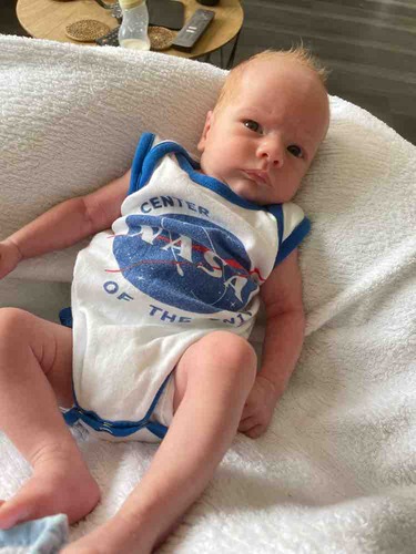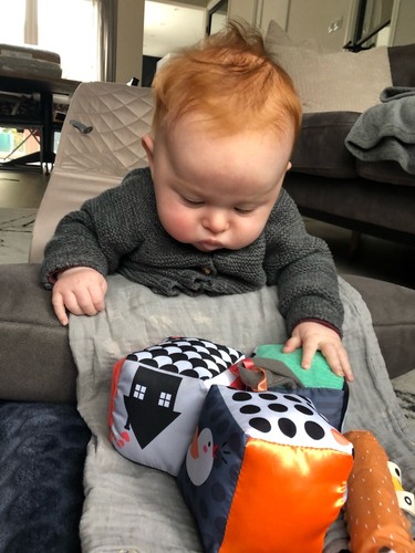 Niet echt rood rood, maar wel rossig. Aan beide kanten wat rood in de familie en zelf rossig geboren, maar dat is op mijn 3e weggetrokken. Ben benieuwd of onze jongeman rossig blijft!