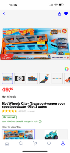 Dit is echt zo een grote hit hier thuis! Is een racebaan die je kan uitklappen en wordt 2 meter lang. Vervolgens kan je de autotjes afschieten echt super leuk