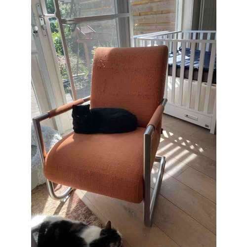 Wij hebben besloten om onze stoel uit de huiskamer boven neer te zetten. Zo vaak zitten we er toch niet op. Alleen ik wil er echt graag een hoes over heen, of iets dergelijks. Deze stoel is oranje en past dus qua kleur echt niet in de kamer.