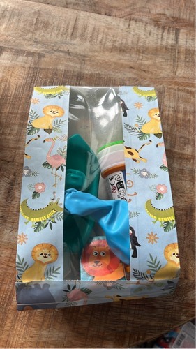 Allemaal van de Action, bellenblaas, plastic bootje, ballonnetje en rozijntjes, zakje is ook van de Action