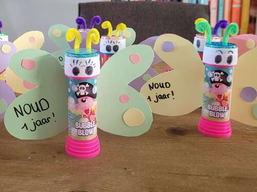 Ik ga zoiets maken en dan met een zakje uitdeelsoepstengels van de ah en mss een leuk uitdeelcadeautje van de action er bij ofzo