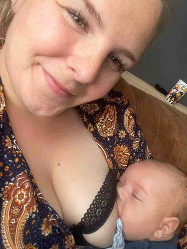 Ik heb nu de voorgevormde van Noppies, die vind ik wel fijn. Heb 2 verschillende aan de ene zit een kanten randje aan de bovenkant zodat je ook wat minder “‘naakt” voedt (niet de beste foto maar als voorbeeld 🙈). Dat met de bh van de bonprix had ik ook continu 😩