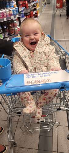 Wat een ontwikkelingen in 1,5 week tijd! Winkelwagen lijkt me inderdaad een goed idee. Dat gaan wij binnenkort ook eens proberen. Ik ga volgende maand ook het fietsen proberen. Eerst heel kort in de straat en kijken hoe dat gaat. Ze is dan 8 maanden. Zit vanaf 5,5/6 maanden zelfstandig.