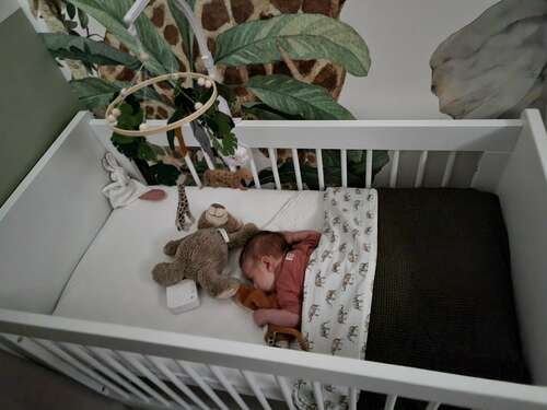 Wij zijn hier ook erg blij met onze moonie beer! Gebruiken hem elke nacht, gaat na tijdje vanzelf uit en springt weer aan als de baby gaat huilen. Ons dochtertje slaapt nu rustig in haar eigen wiegje dus erg blij mee