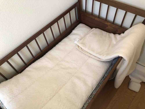 Wij hebben ook deze, een wollen onderdeken voor over het matrasje. Zooooo l ...