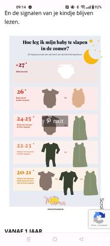 In de nacht zweet hij inderdaad niet meer met dit schema. Ik heb ook een plaatje voor overdag mocht ze dan ook zweten🤭 mijn ventje deed dat in ieder geval wel haha. Tuurlijk is het hierbij zelf kijken wat voor je kleintje wel of niet werkt. Dit plaatje is voor binnenshuis.🙂