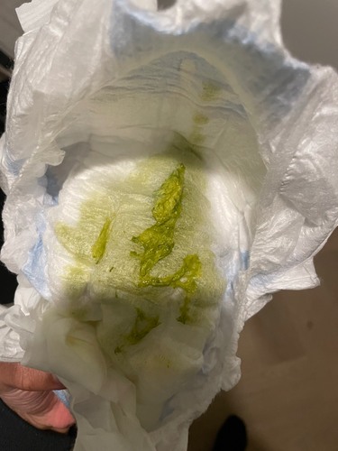 Ik zie niet zo 1.2.3 dat het er "erg" uitziet. Ontlasting varieert van geel tot groen, en alles er tussen in (vooral bij borstvoeding). Later wordt het groenbruinig en alles daar tussenin. Als het je dwars zit zou ik het sowieso even navragen bij de HA idd. Wel fijn dat het waterdunne nu weg is, dat geeft weinig ruimte voor dehydratatie. Good luck mommy 🙏🏽