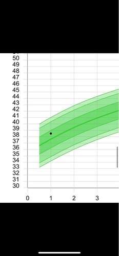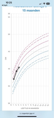 Hier hebben wij een premature dochter met ook een ‘ te groot ‘ hoofd destijds. Het is wel slim om in je achterhoofd te houden dat elk kind zijn eigen curve heeft.