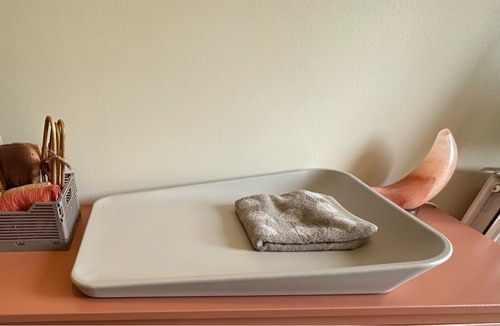 Ik heb er een badmatje opliggen vd ikea (2.50€). Zo handig schuift niet weg en kan in de was, en voelt voor kindje niet zo koud als direct op de matty