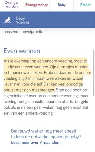 Mijn verloskundige heeft aangegeven dat ik terug moest op de oude voeding o ...