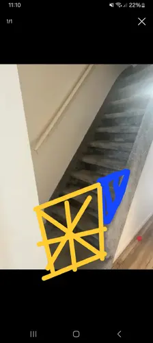 Let niet op mijn mooie tekenkunst maar bedoel dat je dan dat blauwe zelf creert en dan het gele als traphekje. Dan heb je het volledig afgesloten en kan ze er niet bij.