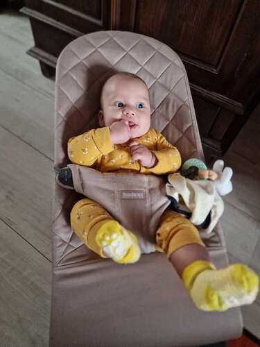 Onze kleine is ontzettend blij met zijn BabyBjörn stoel! Hij kan er comfortabel in loungen en als hij een actieve bui heeft (bijna altijd wel 🤣) kan hij er fijn naar hartelust in schoppen en friemelen.